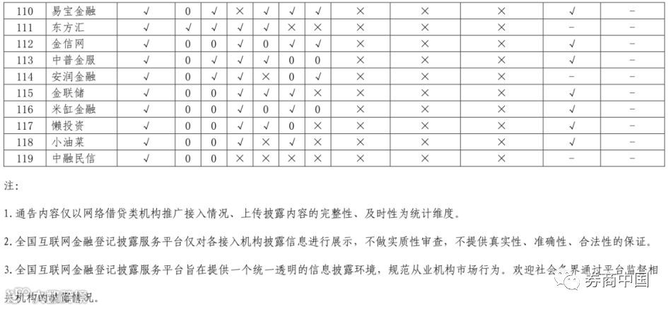 119家平台信息披露名单