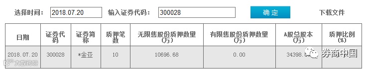 值得注意的是,*金亚仍有超三成股份处于质押状态。中国结算最新数据显示,截至7月20日,*金亚共有10笔质押,累计质押股份数量为10696.68万股,占总股本的31.1%。也就是说,*金亚质押比例高达31.1%。