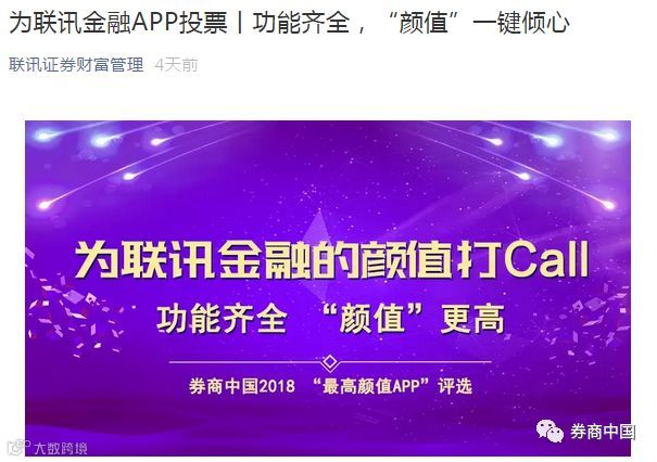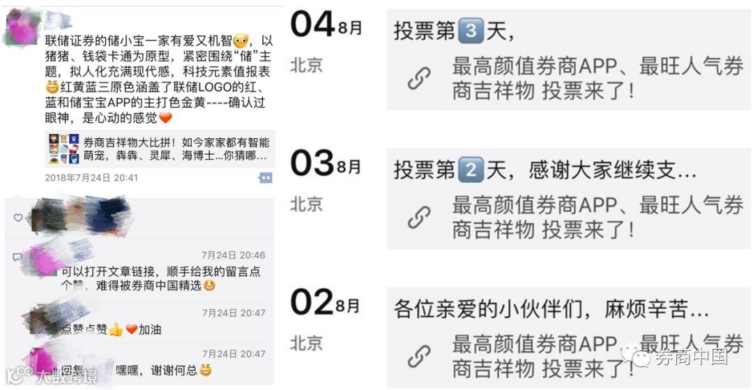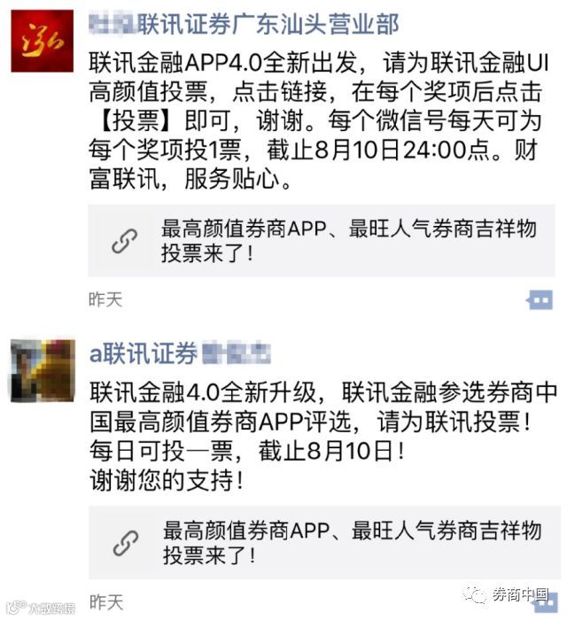 联讯证券的动作是“微信推文+营业部宣传+客户+拉票宣传海报”。