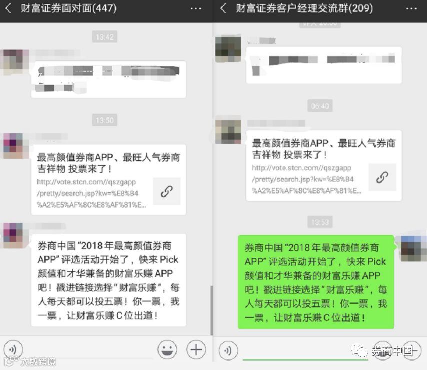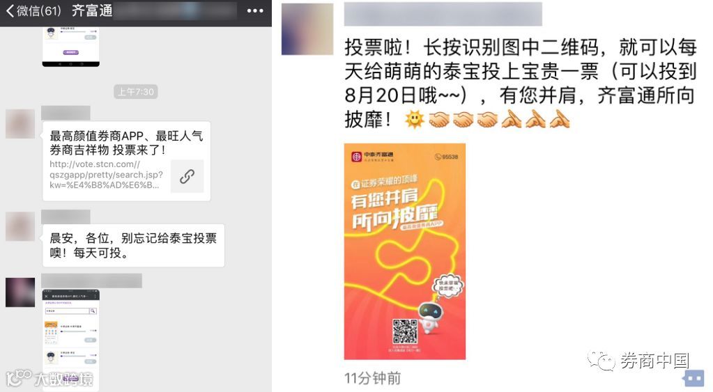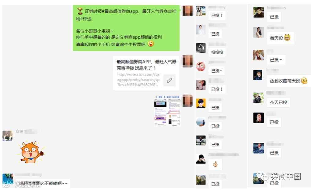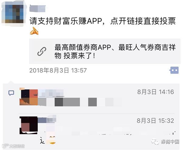 财富证券在微信群和朋友圈积极拉票!