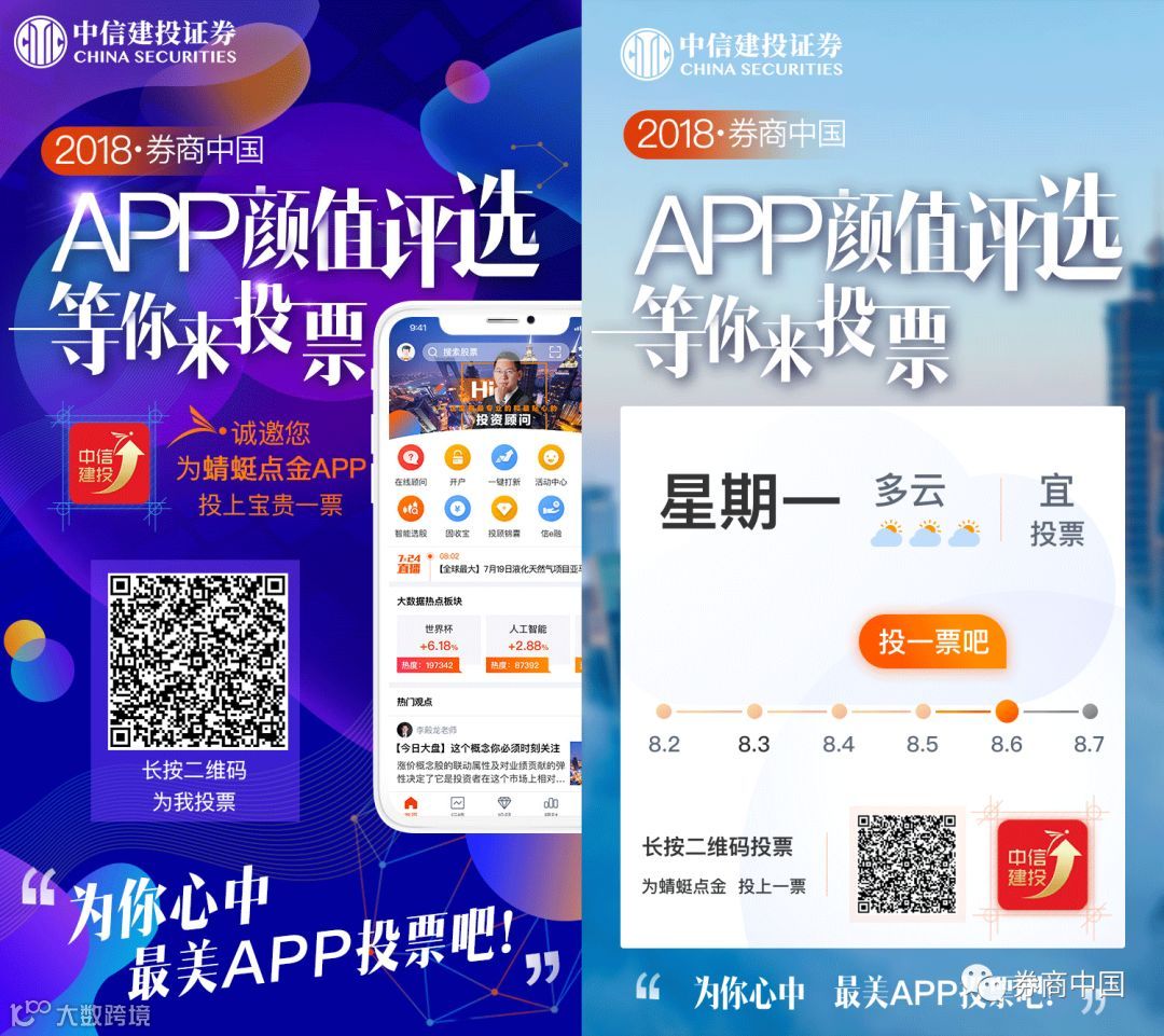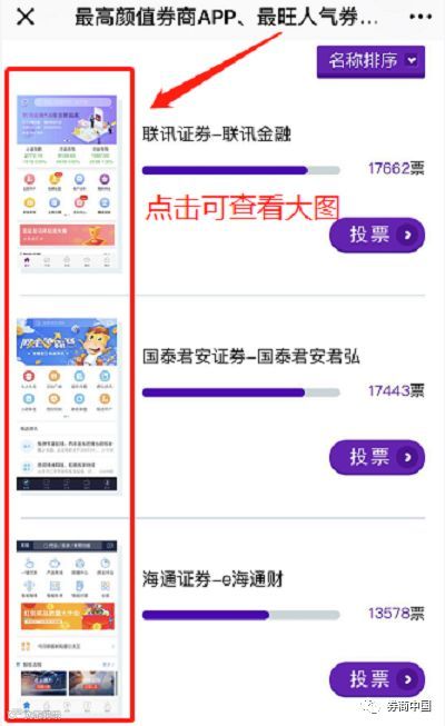 由券商中国推出的这一重磅评选,旨在为券商互联网金融业务造势,加强行业互动,展现券业的优秀理念和突出做法,也让更多客户熟知券商以客户为中心的服务理念。有心的朋友会发现,在投票页面,点击左边APP页面图,可以放大页面,每家APP的首页颜值可以细细看来。
