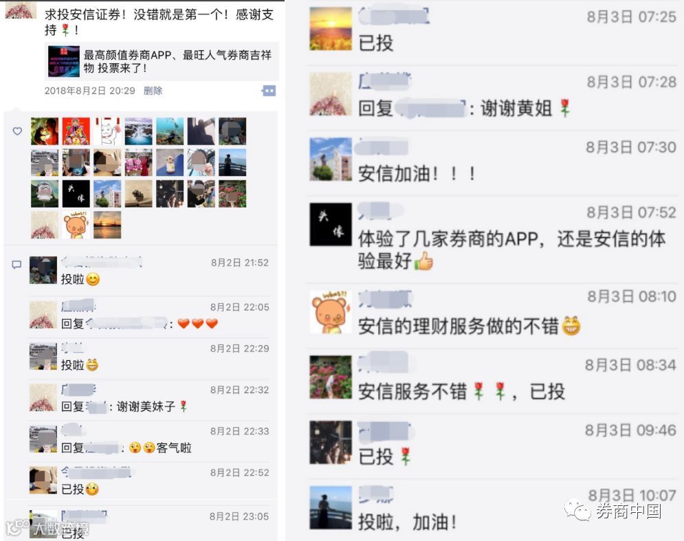 不遗余力地给自家APP拉票的背后,是各家券商品牌荣誉感的唤醒,来自券商的正向反馈也越来越多,“公司全员每天清晨雷打不动的各群投票,APP品牌美誉度和知名度进一步提升”、“前后台拧成一股绳,品牌荣誉感油然而生”“拉票已经体现了全员的凝聚力”……