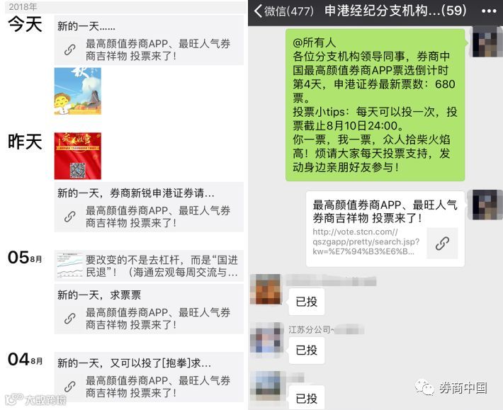 ④申港证券员工自发朋友圈号召投票