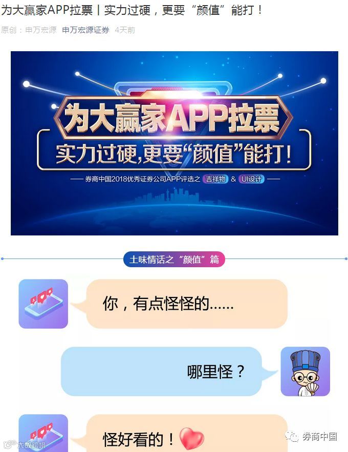 申万宏源不仅在公众号推文《为大赢家APP拉票丨实力过硬,更要“颜值”能打!》,还做了一个H5的创意拉票链接,那歌声也是很动听了。