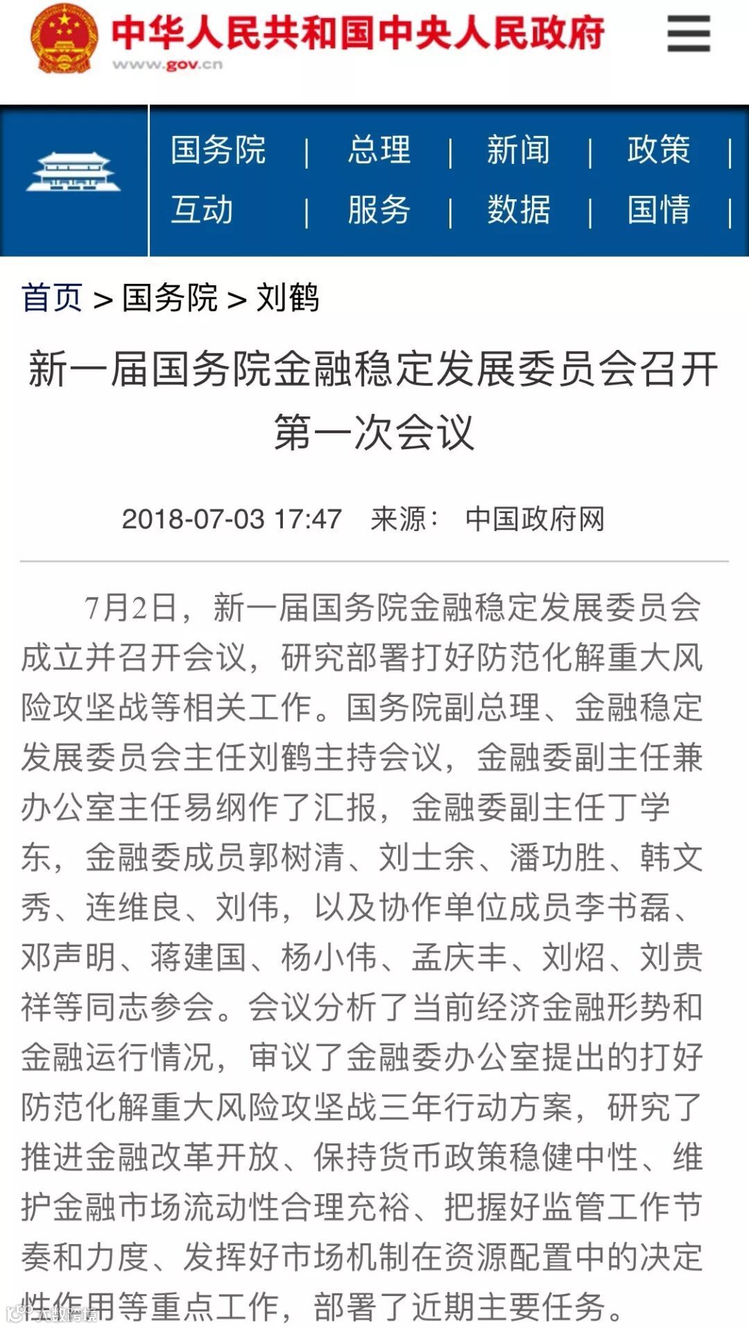 需要说明的是,尽管此前媒体多把国务院金融稳定发展委员简称为金稳委,但从官方的新闻稿看,官方则将其简称为“金融委”。不过,为方便读者认知,本文仍称金稳委。