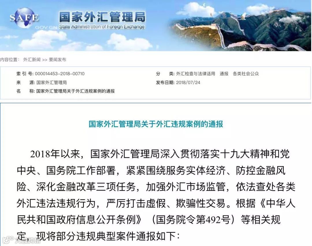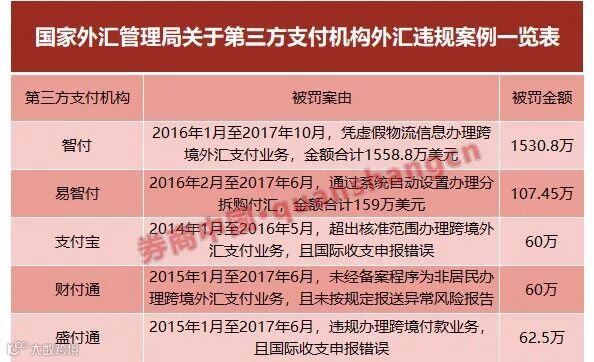 7月24日,国家外汇局再次通报外汇违规案例。又有一批银行被吃巨额罚单,更有意思的是,此次还有包括支付宝、财付通等在内的第三方支付机构首次出现在通报的违规案例中,以彰显外汇局打击各类外汇违法违规行为的力度。