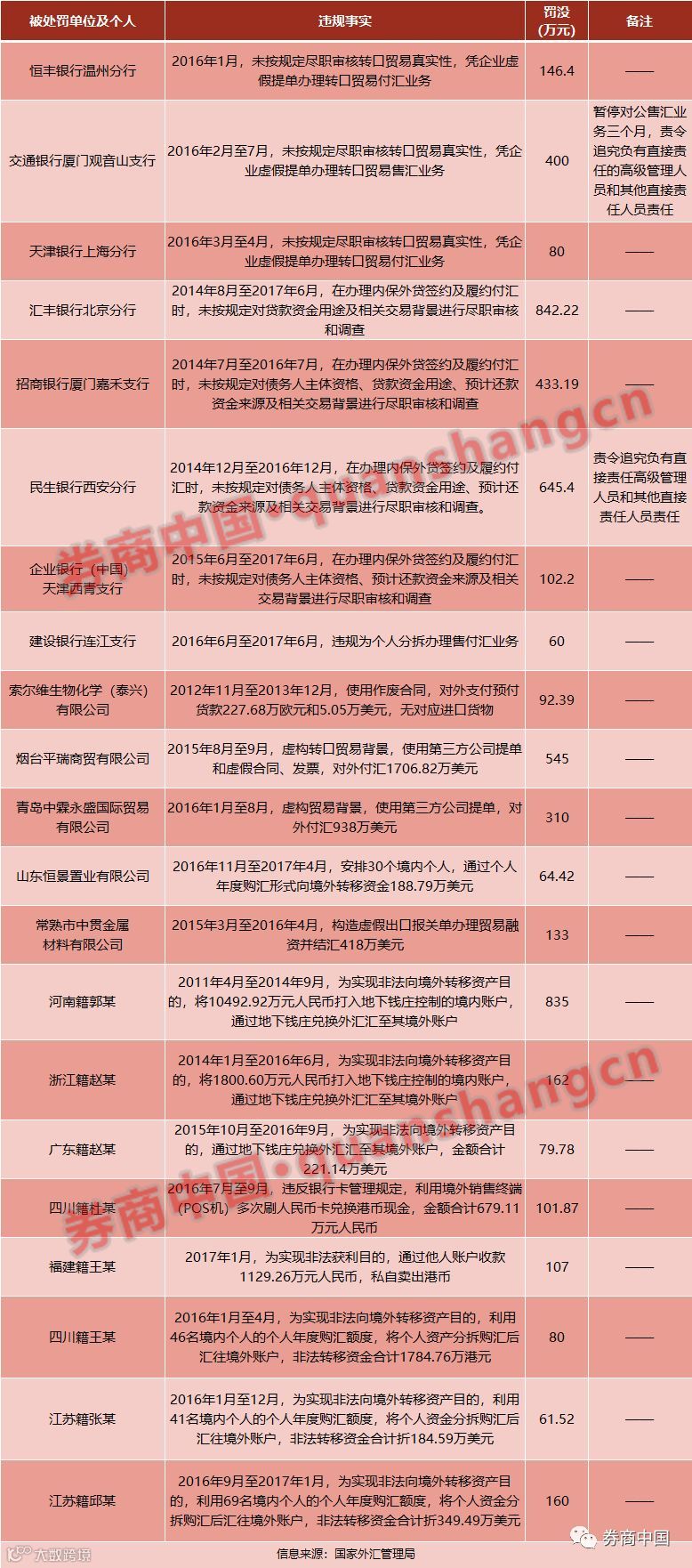▲2018年8月16日外汇局公布罚单