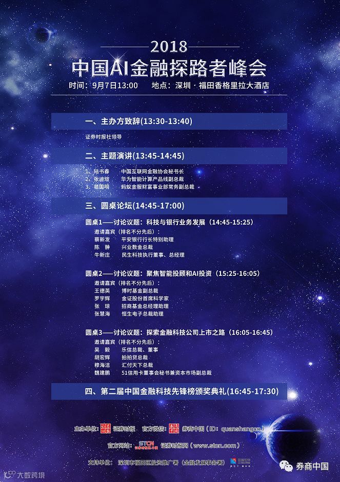 2018中国 AI金融探路者峰会,前身为“中国互联网金融资产嫁接峰会”,是中国金融科技领域内最专业、最有影响力、最具权威性的品牌活动之一,去年正式更名为“中国AI金融探路者峰会”。金融科技步履不停、高歌向前,探路者不断探索、为行业引路。