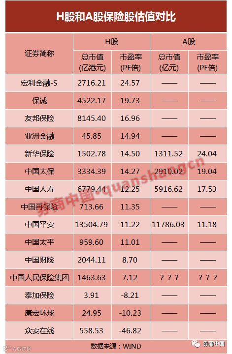 从已实现A+H两地上市的4只保险股来看,除中国平安的H股估值高于A股外,其余3只均为A股估值高于H股。PE估值最高的是新华保险,中国太保、中国人寿、中国平安随后。