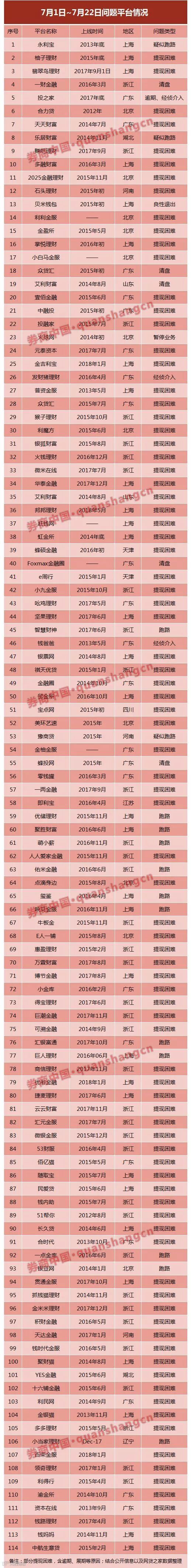 不难看出,P2P平台正在以每天平均3-4家的速度加速退出,据券商中国记者统计显示,从七月以来的22天以来,已出现114家问题平台。