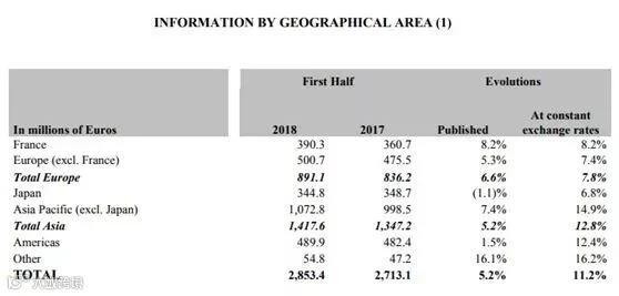 按不变汇率计,所有区域销售额均实现在正增长,日本以外亚太地区保持快速增长,高达14.9%,毫无疑问,中国在其中贡献最大: