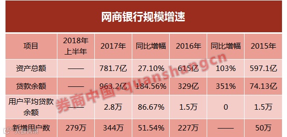 7月6日晚间,网商银行发布2017年报,去年全年该行给344万小微商户贷款、年贷款余额963.2亿元,分别是上一年的1.5倍和3倍左右;实现营业收入42.75亿元,净挣4.04亿,同比增长28%;信贷业务快速增长之际,不良贷款率升高至1.23%。