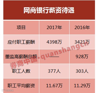 一个比较有意思的数据是,截至2017年末,该行员工总数377人,创造了42.75亿元的营业收入和4亿元的净利润。平均下来,每名员工一年创造了1133.95万元,净挣106.1万元。那么他们的收入情况怎么样?
