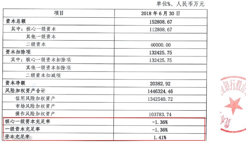 然而,一家名为乌当农商行的银行披露的监管指标令业界难以相信,资本充足率、一级资本充足率与核心一级资本充足率分别为1.41%、-1.36%和-1.36%。