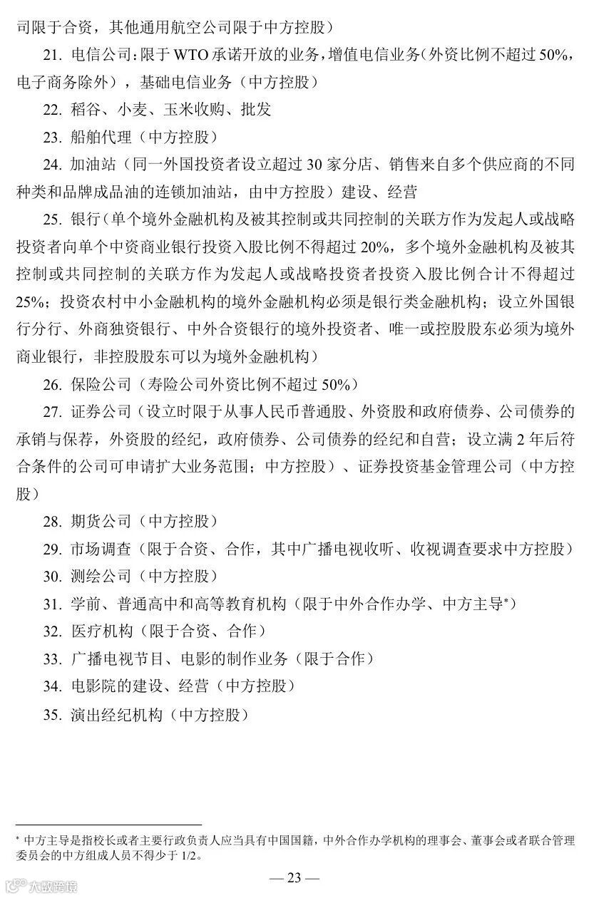 今天的文件中表示,负面清单中未列出的文化、金融等领域与行政审批、资质条件、国家安全等相关措施,按照现行规定执行。
