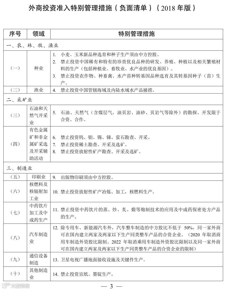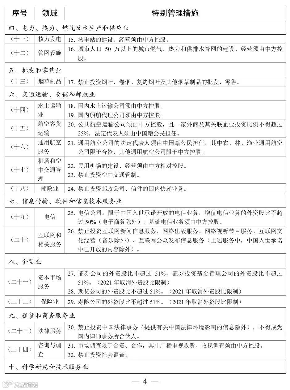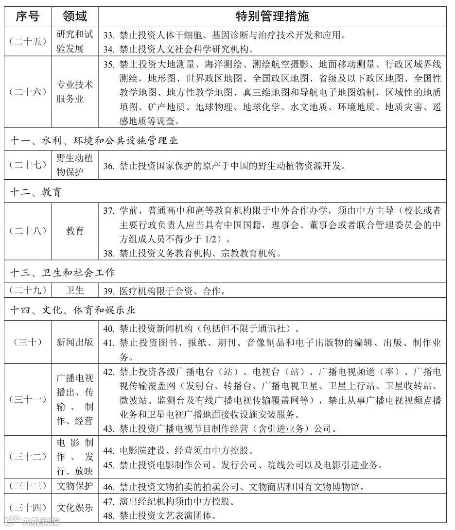 特别管理措施除了禁止或者限制等要求外,还统一列出了外商投资准入方面的股权要求、高管要求等。负面清单之外的领域,按照内外资一致原则实施管理。