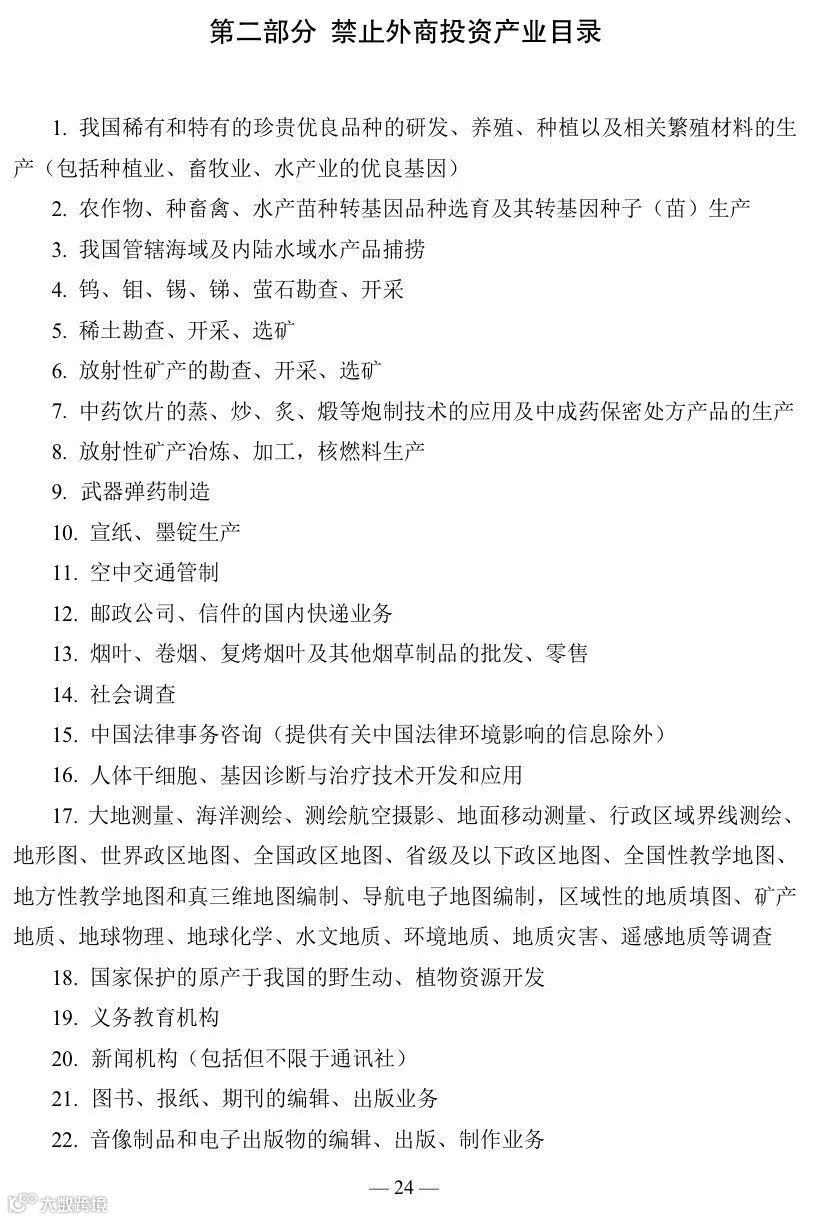 负面清单中还表示,境外投资者不得作为个体工商户、个人独资企业投资人、农民专业合作社成员,从事投资经营活动。