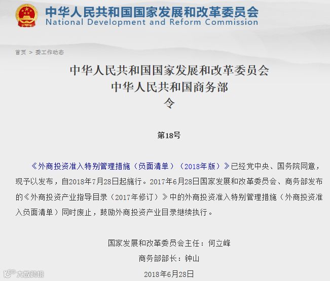 此次负面清单7月28日起施行,此前文件中鼓励外商投资产业目录继续执行。