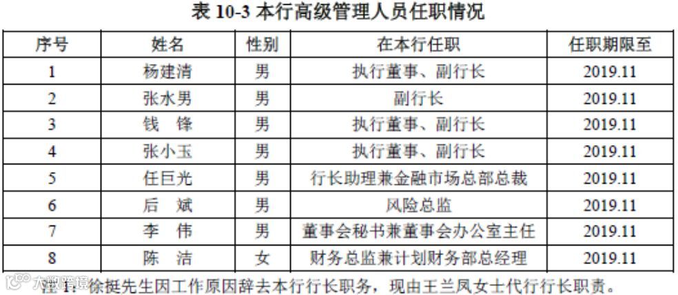 行长空缺一年之久,此前坊间曾推测,彼时该行的副行长或将是有力的继任竞争者。今年6月11日,中共苏州市委组织部公布苏州市市管领导干部任前公示名单,杨建清、钱锋拟任苏州银行党委委员,拟提名为苏州银行副行长,彼时依然无行长提名人选。