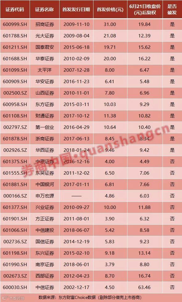 早在此次大调整之前,已经有不少券商股破发。
