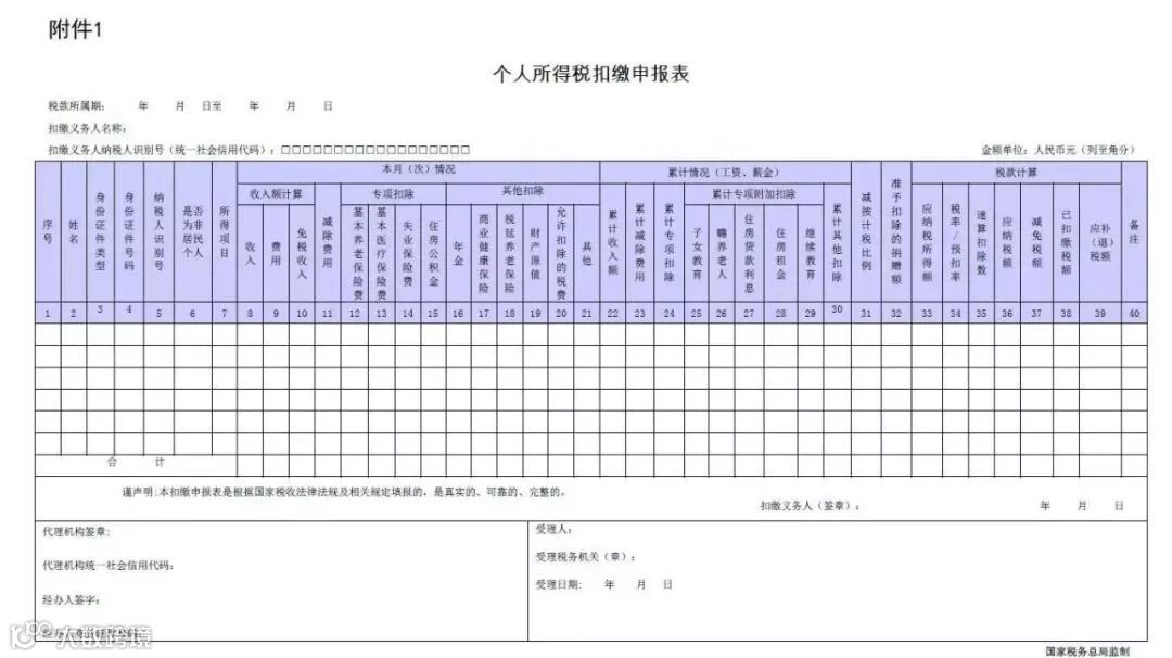 附件一:《个人所得税扣缴申报表》及填表说明