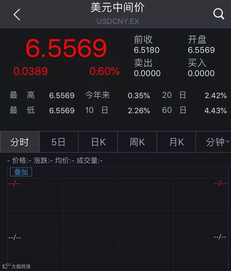 从人民币兑美元的中间价来看,下调了389个基点,报6.5569,创2017年1月9日以来最大降幅,是2017年12月25日以来最低。这是中间价连续第6日下调,累计跌幅达1334点。