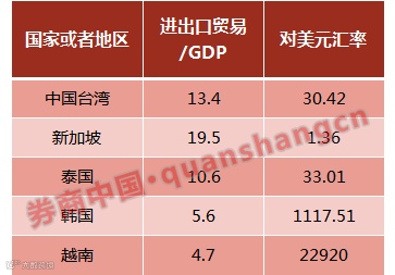 在美中两国可能爆发贸易战之际,对中国出口较大或者依赖程度较高的国家货币,特别是进出口规模较大的地区,面临调整汇率风险越大。