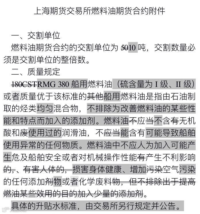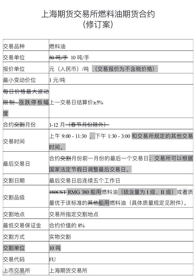 上期所对《上海期货交易所燃料油期货合约》进行了全面修订: