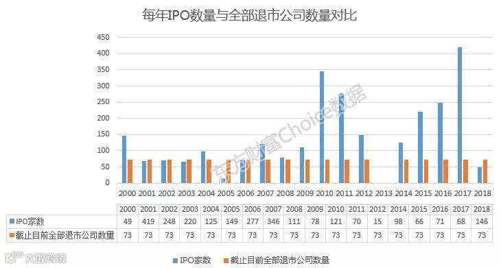 而从发达国家的资本市场来看,在很长的时间内退市公司的数量比IPO的数量更多。有数据显示,纽约证券交易所年均退市率为6%,约50%是主动退市;纳斯达克年均退市率为8%,主动退市率占近三分之二。