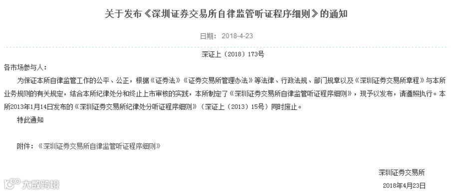 据悉,此次听证会是深交所今年4月23日发布新修订的《自律监管听证程序细则》后举行的首次听证会,也是深交所针对股票强制终止上市审核的首次听证会。