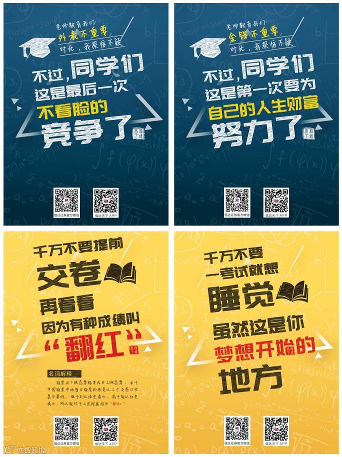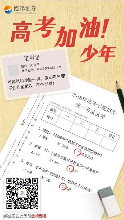 更多的券商则是以海报、卡片等形式送上温暖祝福,祝学子们金榜题名、前程万里。