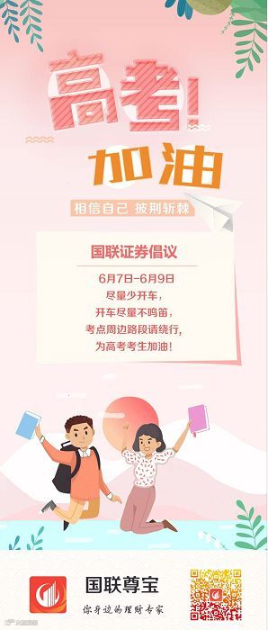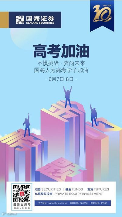 为考生和家长谋便利,免费开放全国营业网点,提供休息区、纸笔、饮用水等,为学子踏上锦绣前程的路上助一份力。更多券商以海报的形式送上温暖祝福,祝他们金榜题名、前程万里。
