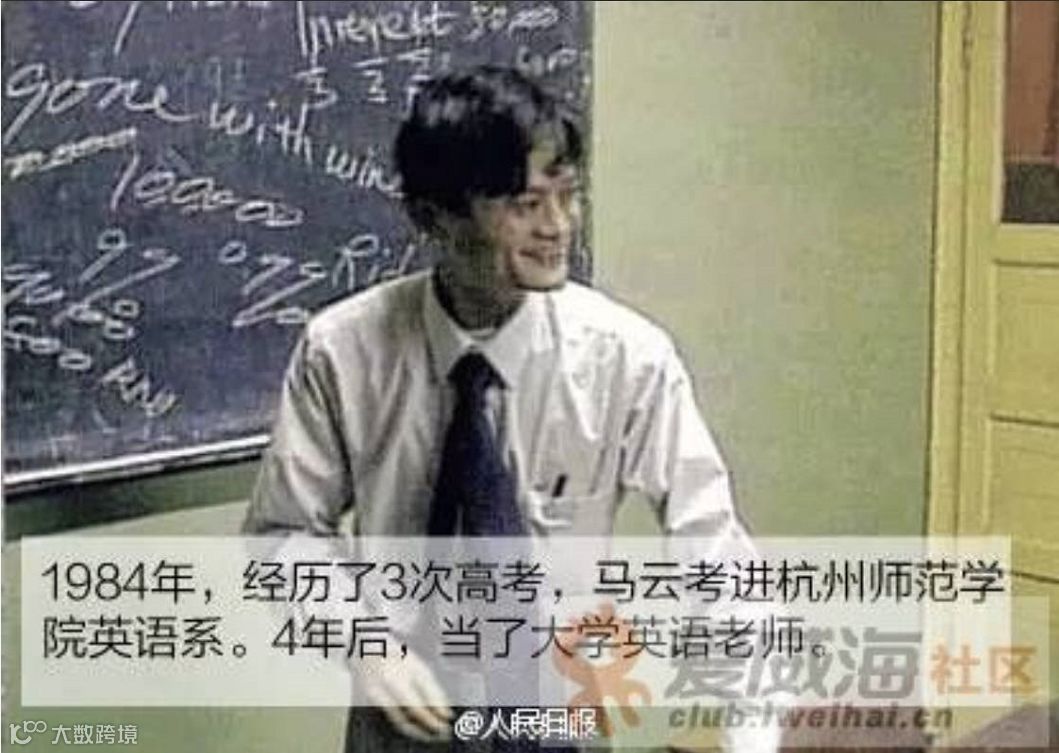 1984年,经历3次高考,马云考进杭州师范学院英语系。4年后,当了大学英语老师。