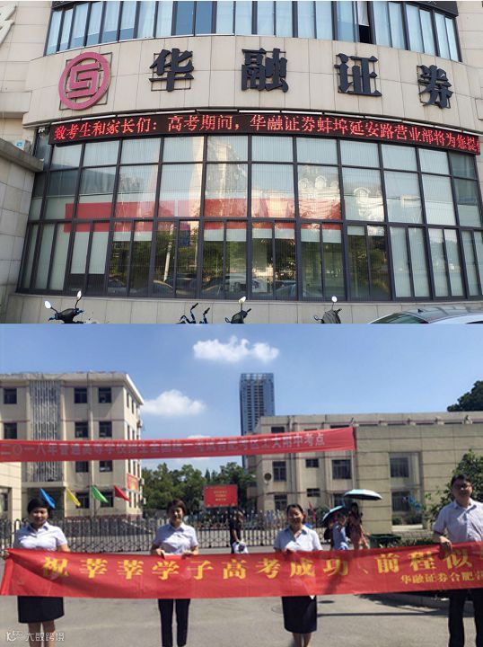 华融证券相关人士告诉记者,今年在总部的倡议下,华融证券在全国的多家营业部积极行动,采取多种方式助力高考:多家营业部为考生和家长提供休息区域和茶水、水果等,还有营业部的同事走进考点,为高考学子加油打气。