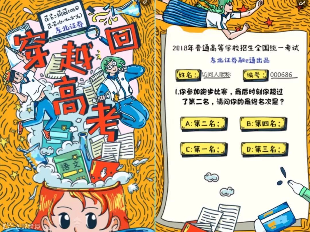 以H5的方式,让用户穿越回高考时代,在手机上做趣味答题。