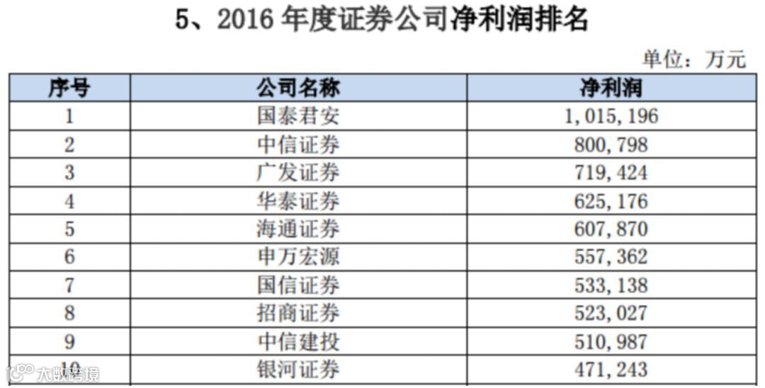 券商中国记者统计,证券行业前十大券商2016年度累计营业收入占全行业营收总额的60%,净利润则占全行业净利润总额的52%。