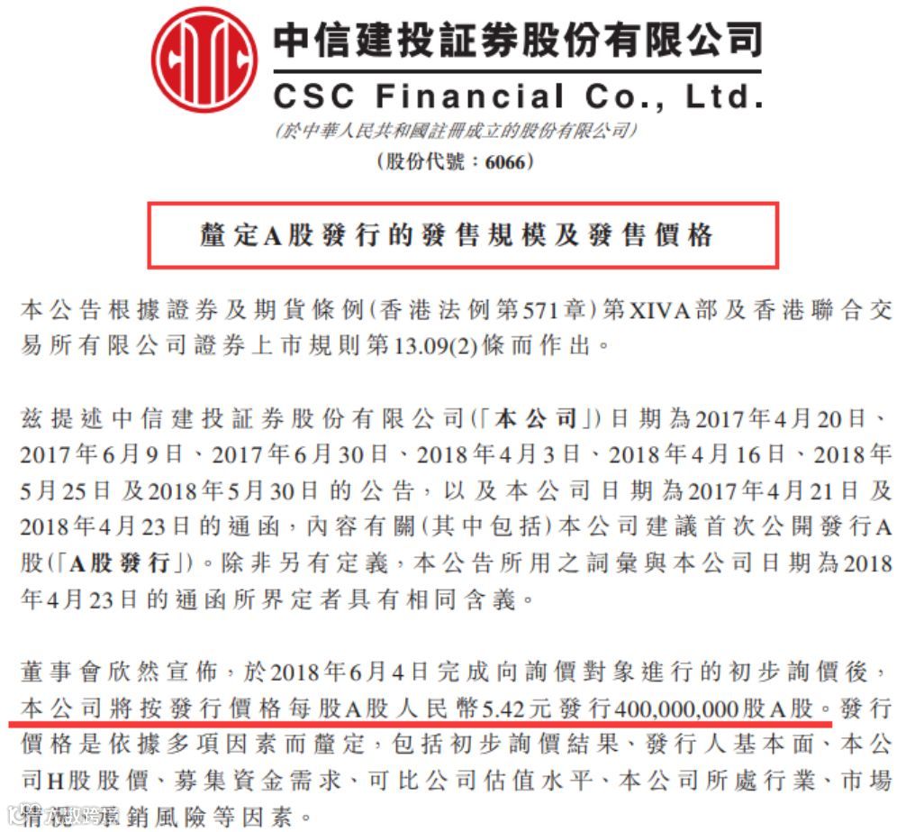 今日(6月6日)凌晨,中信建投证券(股票简称:中信建投,股票代码:601066)在上交所披露了最新的首次公开发行股票(A股)招股说明书,确定此次发行价格为5.42元/股,发行股份数量为4亿股,占此次发行后股份总数的比例为5.23%,募集资金总额21.68亿元。中信建投今日早晨也在港交所发布公告。