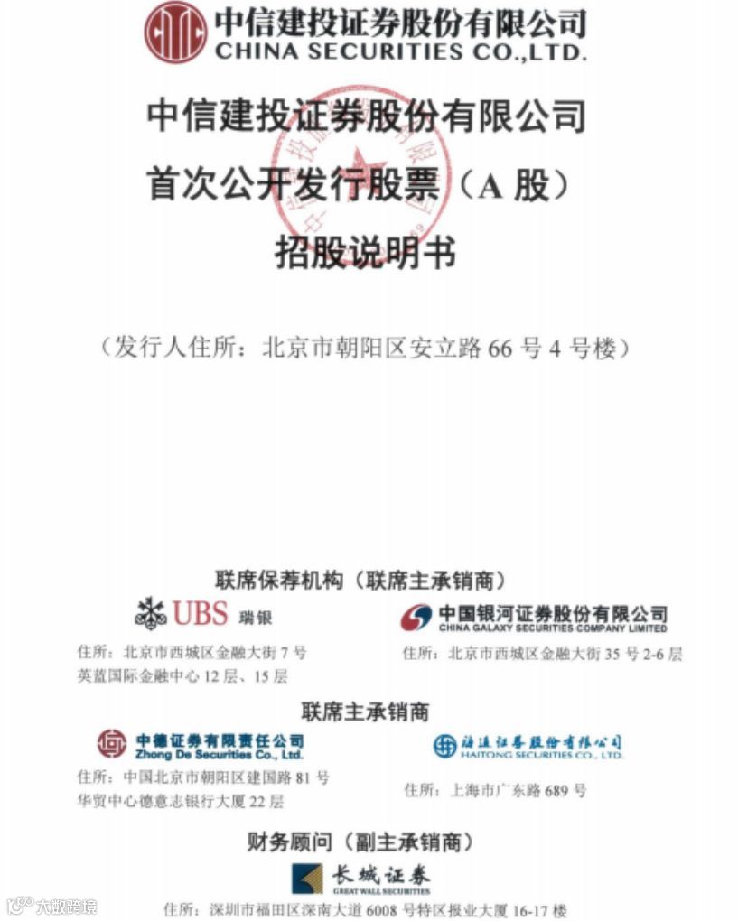 中信建投A股上市,聘请的联席保荐机构(联席主承销商)是瑞银证券和中国银河证券。中德证券和海通证券担任联席主承销商。长城证券担任财务顾问(副主承销商)。