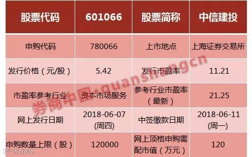 今年第三只券商新股来了!就在明天,即6月7日,中信建投进行网上和网下发行。
