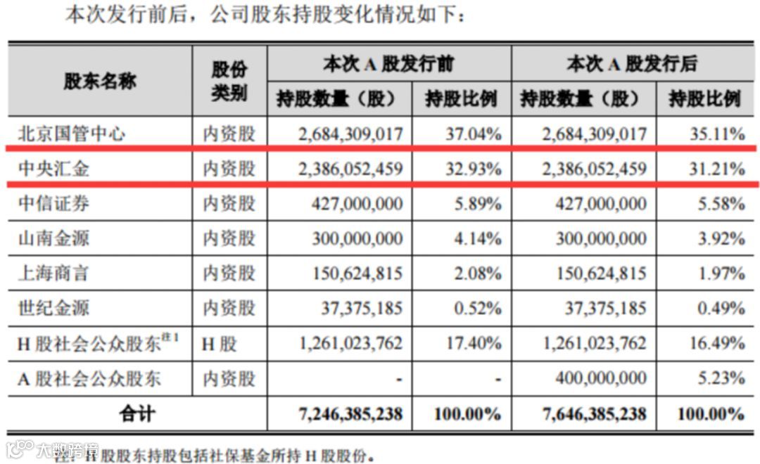 招股书显示,中信建投第一大股东是北京国管中心,此次A股发行前持股比例37.04%,A股发行后持股比例35.11%;中央汇金是中信建投的第二大股东A股发行前持股比例32.93%,A股发行后持股比例31.21%。