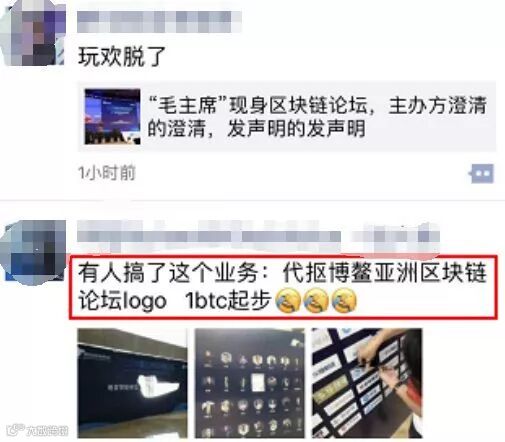 有在场圈内人士还“发现”了新商机:代抠博鳌亚洲区块链论坛logo,1btc起步。