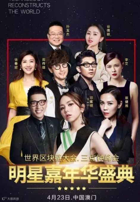 今年4月份,在澳门办的所谓世界第一届区块链大会,请明星邓紫棋唱大会主题曲。