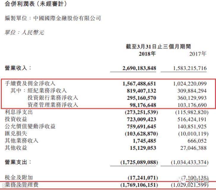今年一季度,中金公司的手续费及佣金净收入15.68亿元,同比增长53%,主要原因是“收购中投证券;及经纪业务收入和投资咨询业务收入增加”;中金公司投资收益及公允价值变动净收益同比增长125.6,系持有及处置金融工具所产生的收益增加。