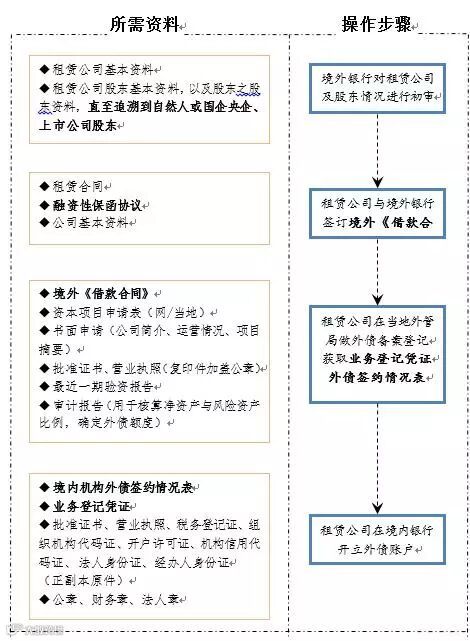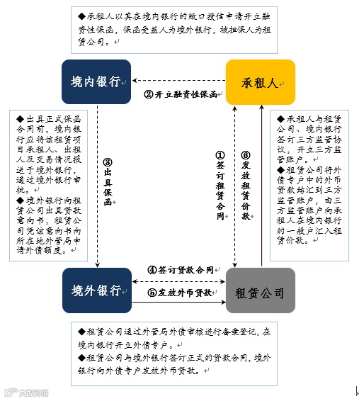 (备注:因租赁外债业务需向租赁公司所在地外管局备案登记,故需要承租人提供有形动产作为租赁标的物配合此次租赁业务,流程中以承租人提供的资产设备作为标的物。)