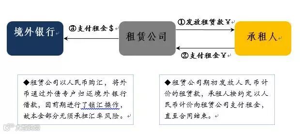 ①租赁公司通过三方监管账户,向承租人发放以人民币计价的融资租赁款;