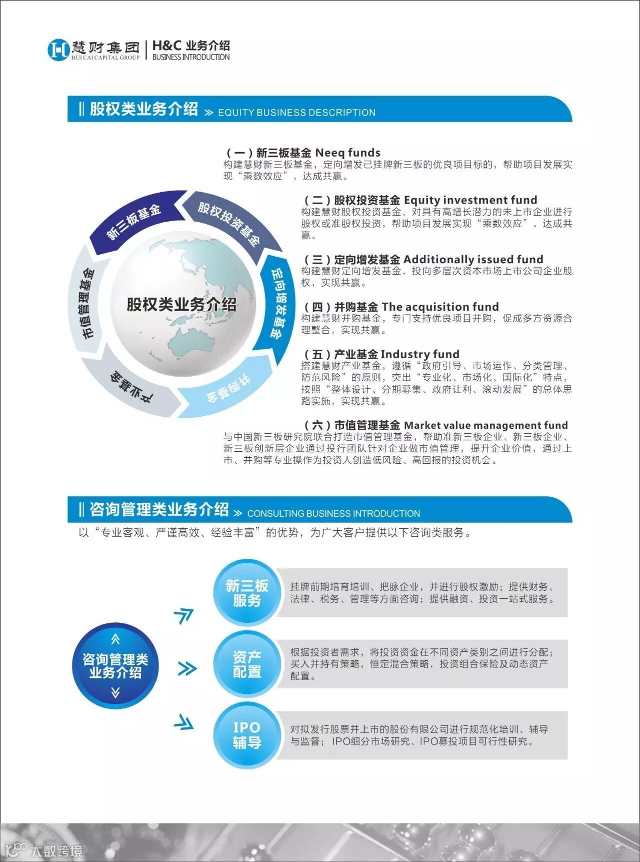 慧财集团提供一站式财富管理服务,专注于股权投资(定向增发、新三板等)、资产配置、家族信托、阳光私募基金、融资租赁、贵金属交易服务、融资服务、新三板挂牌、IPO辅导,为您的财富增值保驾护航!欢迎各位来咨询了解!