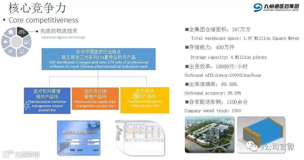 其实这一点我们现在就能初步做到,现在公司所有药店客户的订单直接在手机上就可以完成,供货方的平台也与公司ERP打通,供货方可以通过手机随时查看其商品在九州通仓库里的库存,以及具体的销售去向和销售额。也就是说,未来九州通将通过IT平台的建设,完整打通上下游的交易环节,同时在线下承载中间物流环节。未来我们还会让这一平台更加智能化,提升其效率和准确性,提升客户体验。