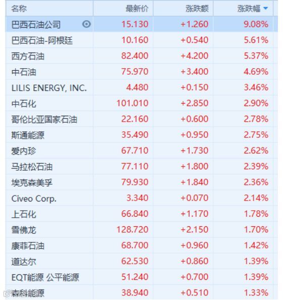 除了产油国之外,国际能源企业也成为最大的受益者。受国际油价大涨带动,昨夜欧美股市能源板块也大涨近2%,两大巨头雪佛龙和埃克森美孚上涨超1.5%。而国内股市原油板块如采掘,页岩气等也有望受益。