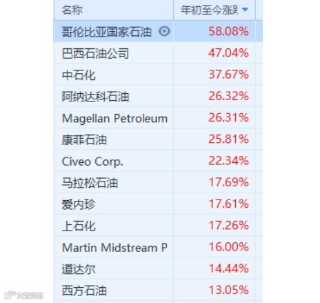 从昨天市场来看,能源公司成为最大受益者。从年初至今的涨幅来看,能源公司股票表现也相当不错。