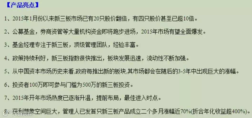 募集规模不超过1亿元,主要投资新三板市场,管理费为1.5%,认购方式为100万起(不含认购费)。